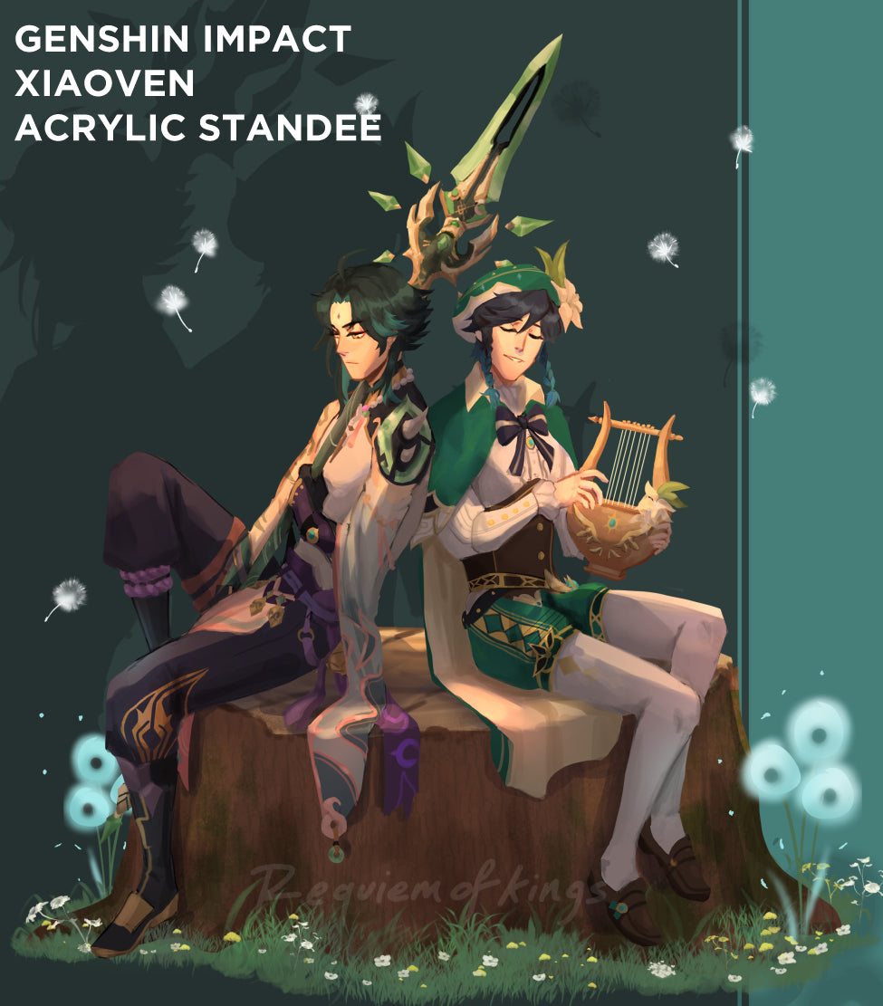 5 inch Clear Acrylic standee of Xiao and Venti from Genshin Impact